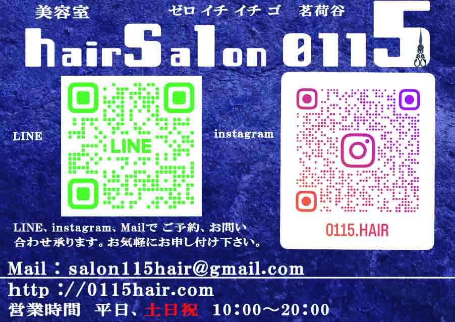 Top LINE コピー 2023.12.032025.03.05 【Hair Salon0115(ゼロイチイチゴー)】 TEL 03-6902-1805 東京都文京区大塚3−19−3佐山ビル1階 営業時間 10:00〜20:00 (カット最終受付19:00/メニューによって最終受付時間が異なります。) 定休日 【毎週火曜日、第1、3、5水曜日】 HotpepperBeautyからのウェブ予約はこちら